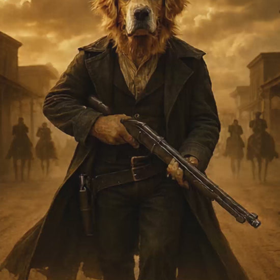 Give your dog or cat the starring role they deserve with a custom Western cinematic pet movie poster. Inspired by classic cowboy films, these movie posters feature bold detail, cinematic lighting, and timeless Wild West flair.